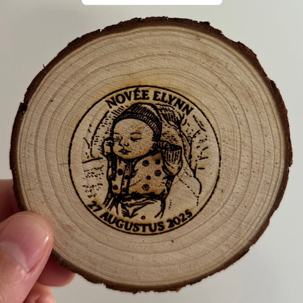 Na mijn operatie had ik eindelijk de tijd om een idee uit te werken dat al langer in mijn hoofd zat. Ik wilde iets creëren dat persoonlijk, uniek en duurzaam is. Zo ben ik begonnen met het graveren van bieropeners en houten schijfjes.